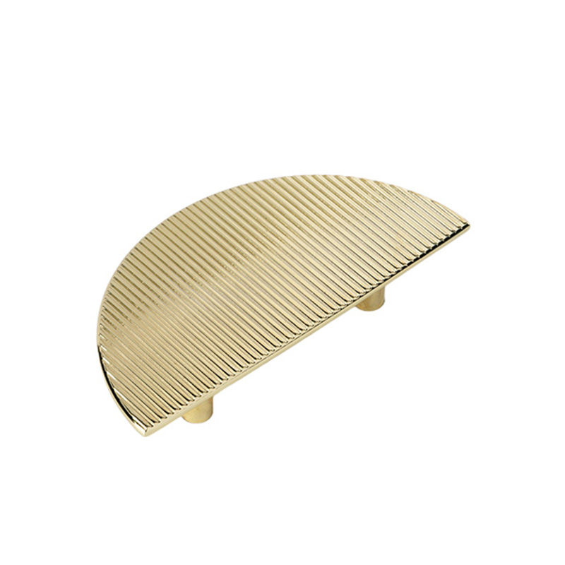 - ידיות מודרניות בעיצוב חצי עיגול עם טקסטורה מחורצת עדינה, מוסיפות אלגנטיות וסטייל ייחודי לרהיטים.