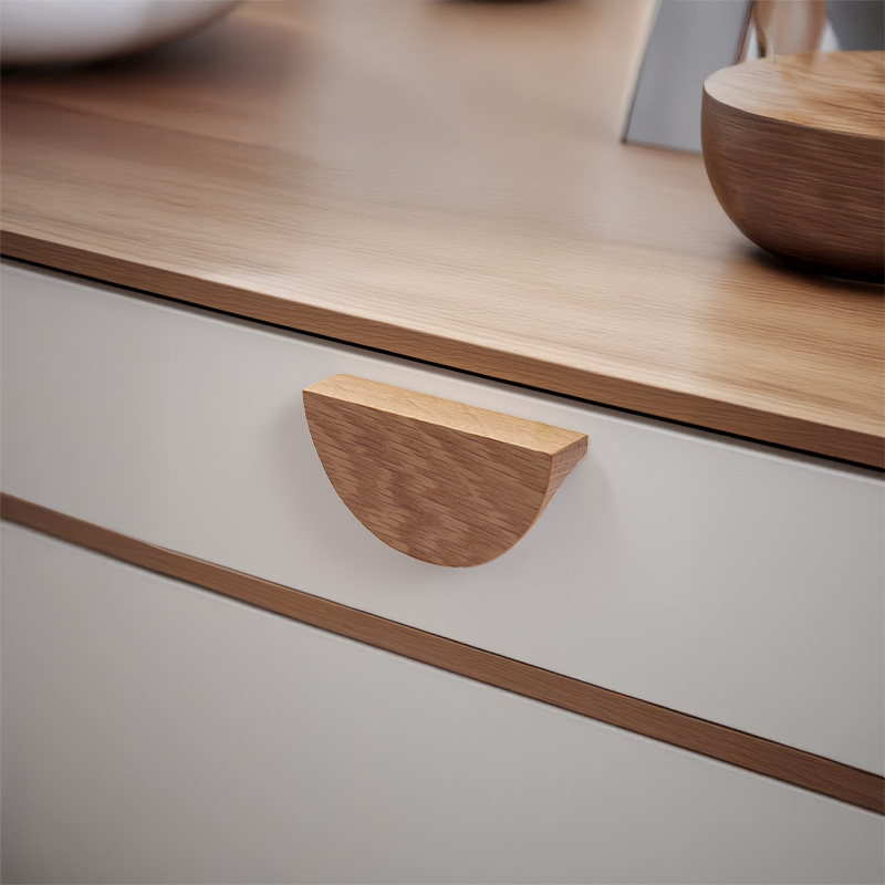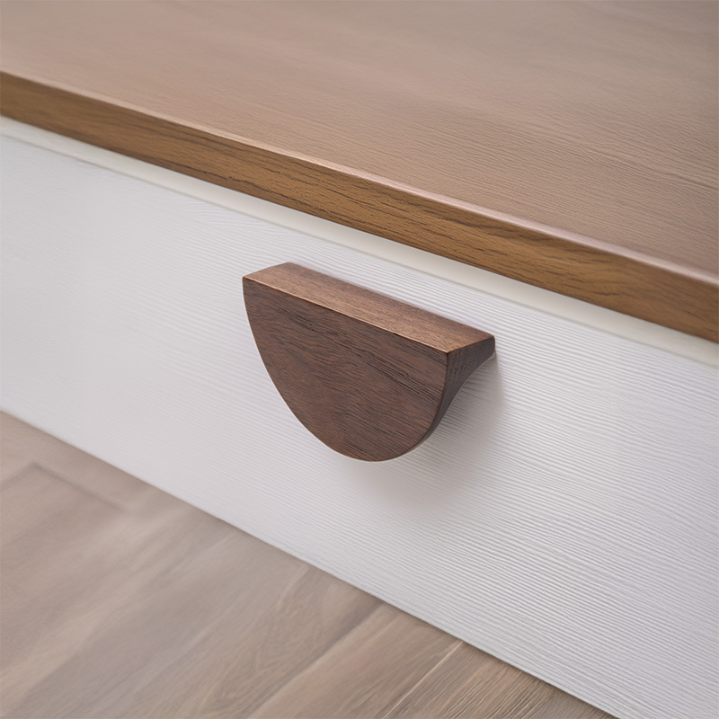 • ידית עץ בעיצוב גיאומטרי-מודרני, המעניקה לרהיט מראה נקי אך עם נוכחות.