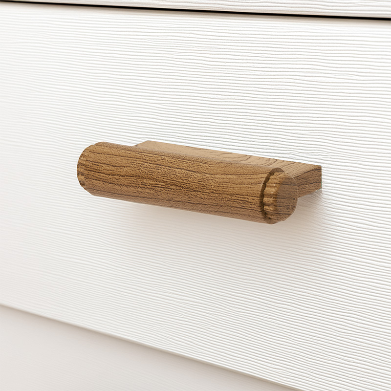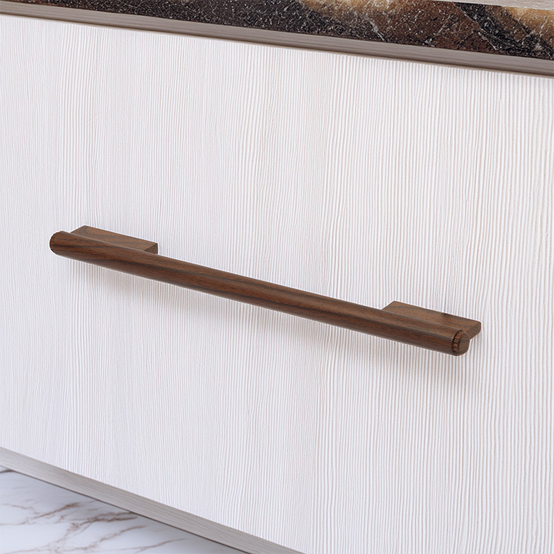 - ידית בעיצוב מודרני ונקי, עם מראה דמוי עץ טבעי ויוקרתי.